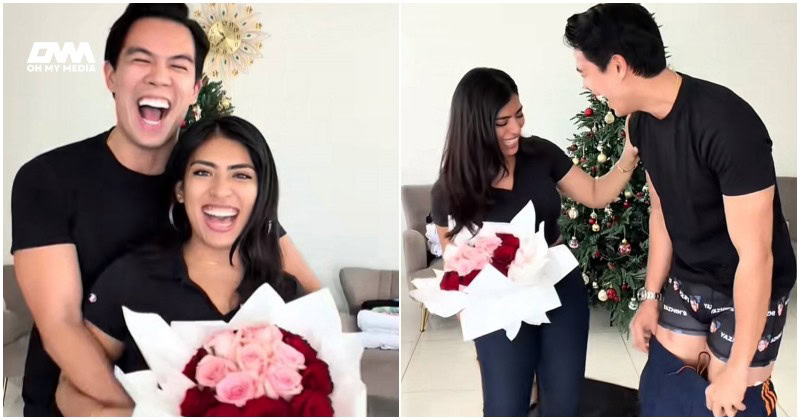 Menerusi hantaran di TikTok, Simon membuat kejutan buat Yazmin dengan membawa sejambak bunga mawar.