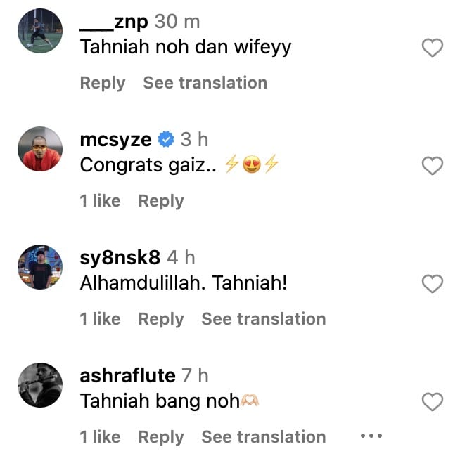 Noh juga merakamkan penghargaan kepada ibu bapa, keluarga, rakan serta para peminat yang sentiasa mendoakan kesejahteraan mereka.
