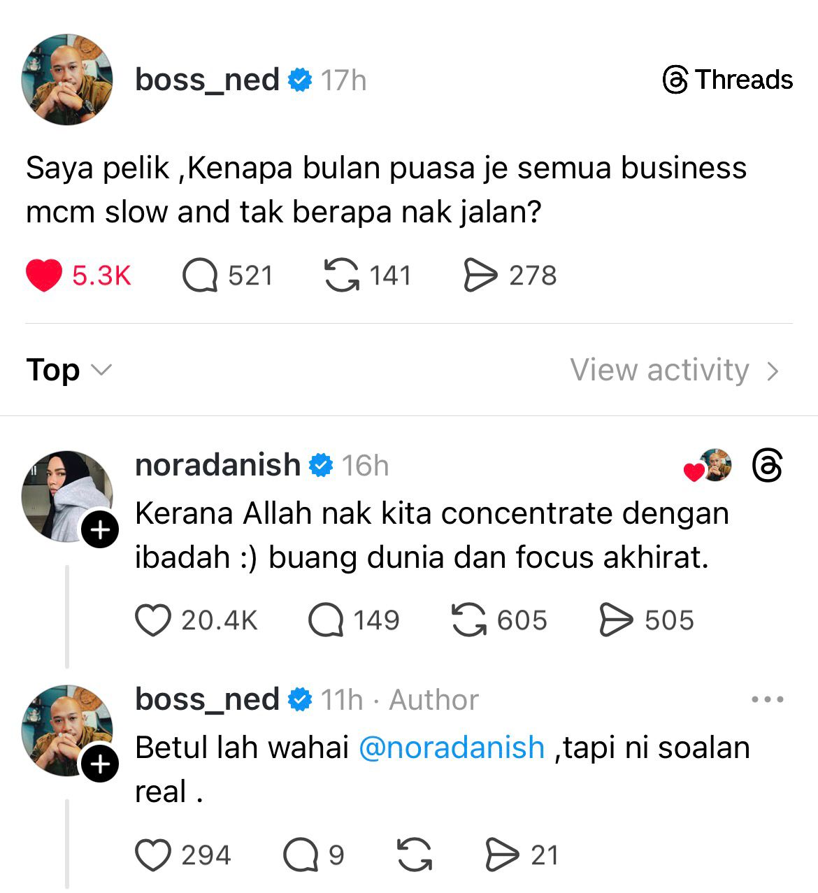 “Saya pelik, kenapa bulan puasa je semua business macam slow and tak berapa nak jalan?” tulisnya.
