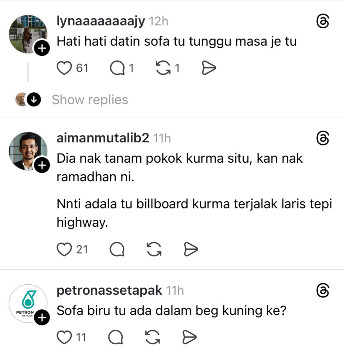 Meninjau ke ruangan komen, warganet terhibur melihat gelagat pasangan itu dan sempat menanyakan sekiranya terdapat barangan lain yang mahu dijual oleh usahawan berkenaan.