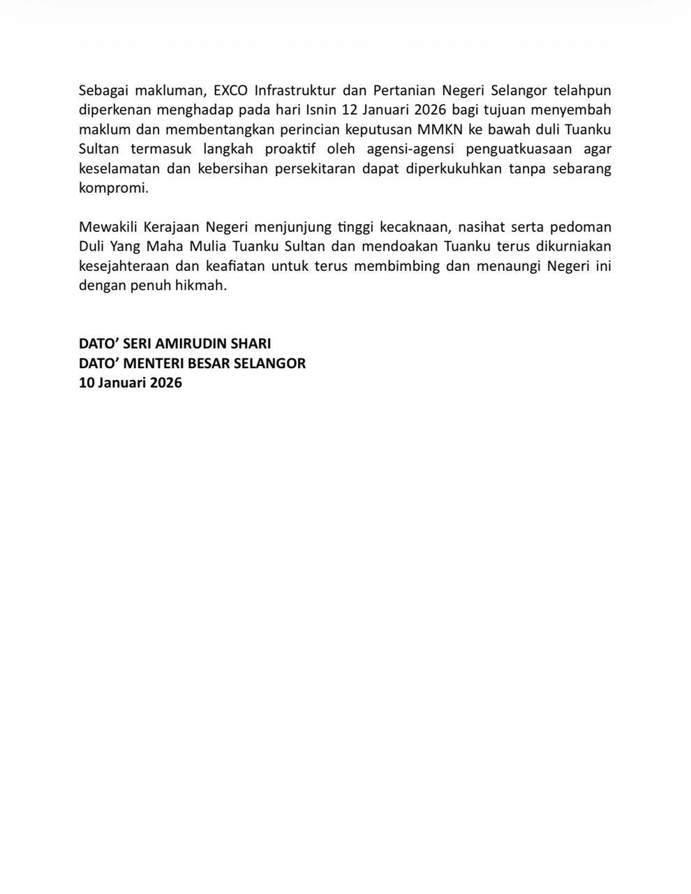 Menteri Besar Selangor, Datuk Seri Amirudin Shari berkata, keputusan itu dibuat susulan keprihatinan Sultan Selangor terhadap isu berkenaan.