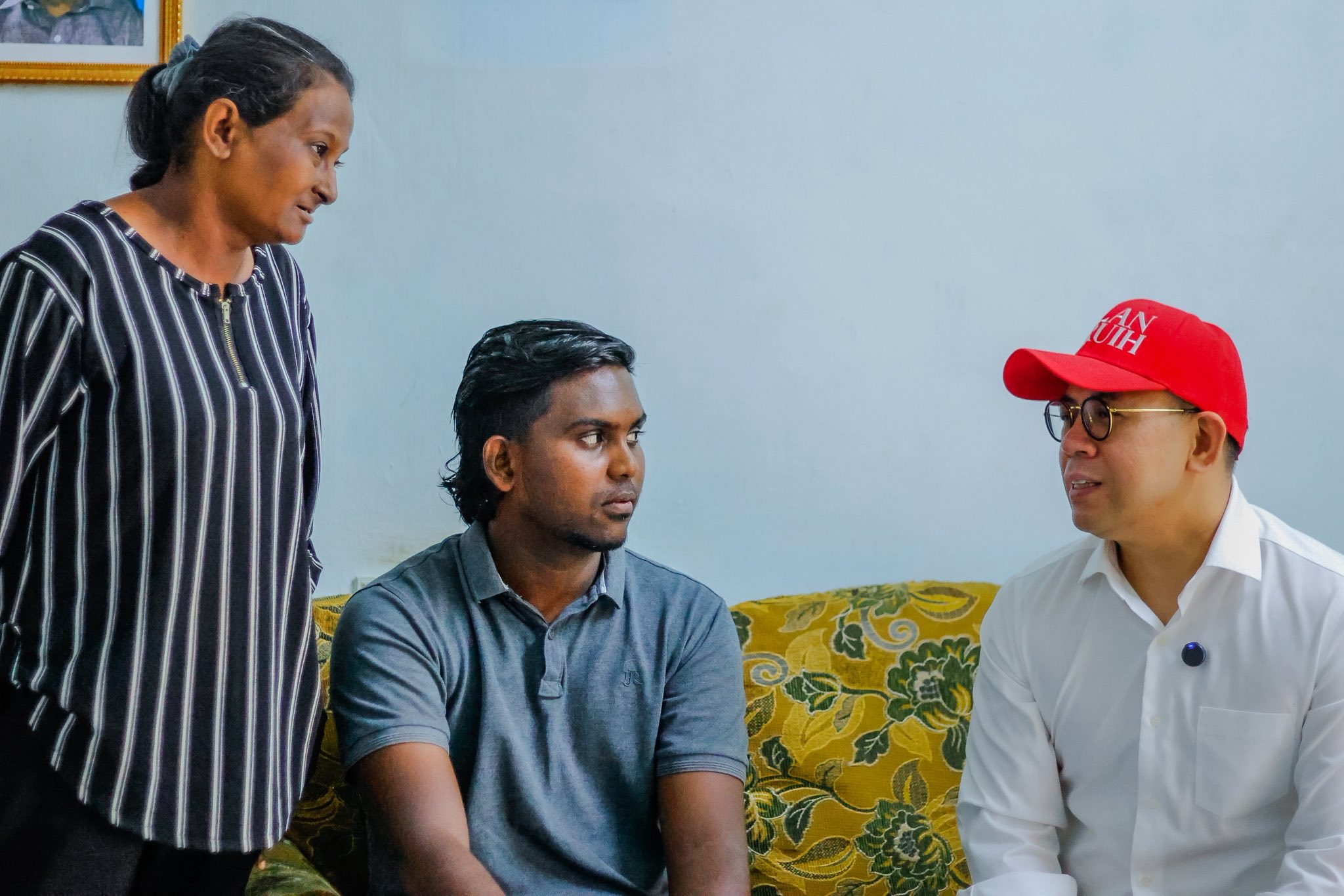 Steven yang juga Ahli Parlimen Bukit Mertajam hadir ke kediaman penuntut Ijazah Sarjana Muda Pentadbiran Perniagaan Universiti Cyberjaya, S. Selvestone, 25, di Sungai Jawi, di sini.