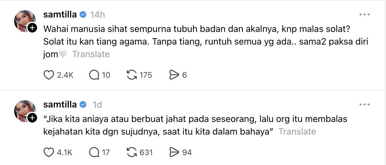 Artikel lain: Syatilla Melvin seru jaga solat, hargai peluang perbaiki diri – “Bayangkan Tuhan ambil dalam keadaan lalai”
