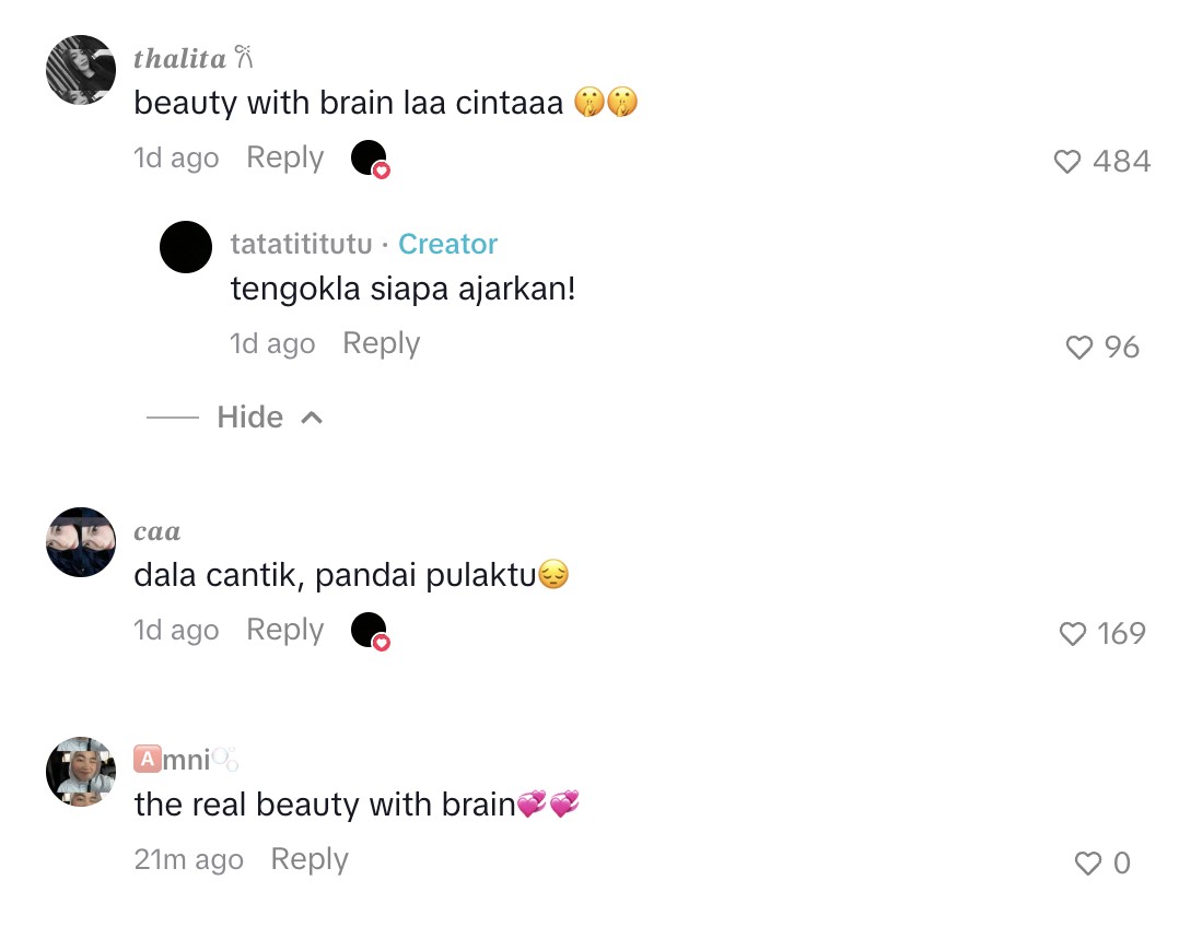 Menjengah ke ruangan komen, rata-rata wargaaya memberikan pujian terhadap Thalita yang dianggap bukan sahaja berbakat dalam nyanyian malah bijak dalam pelajaran.