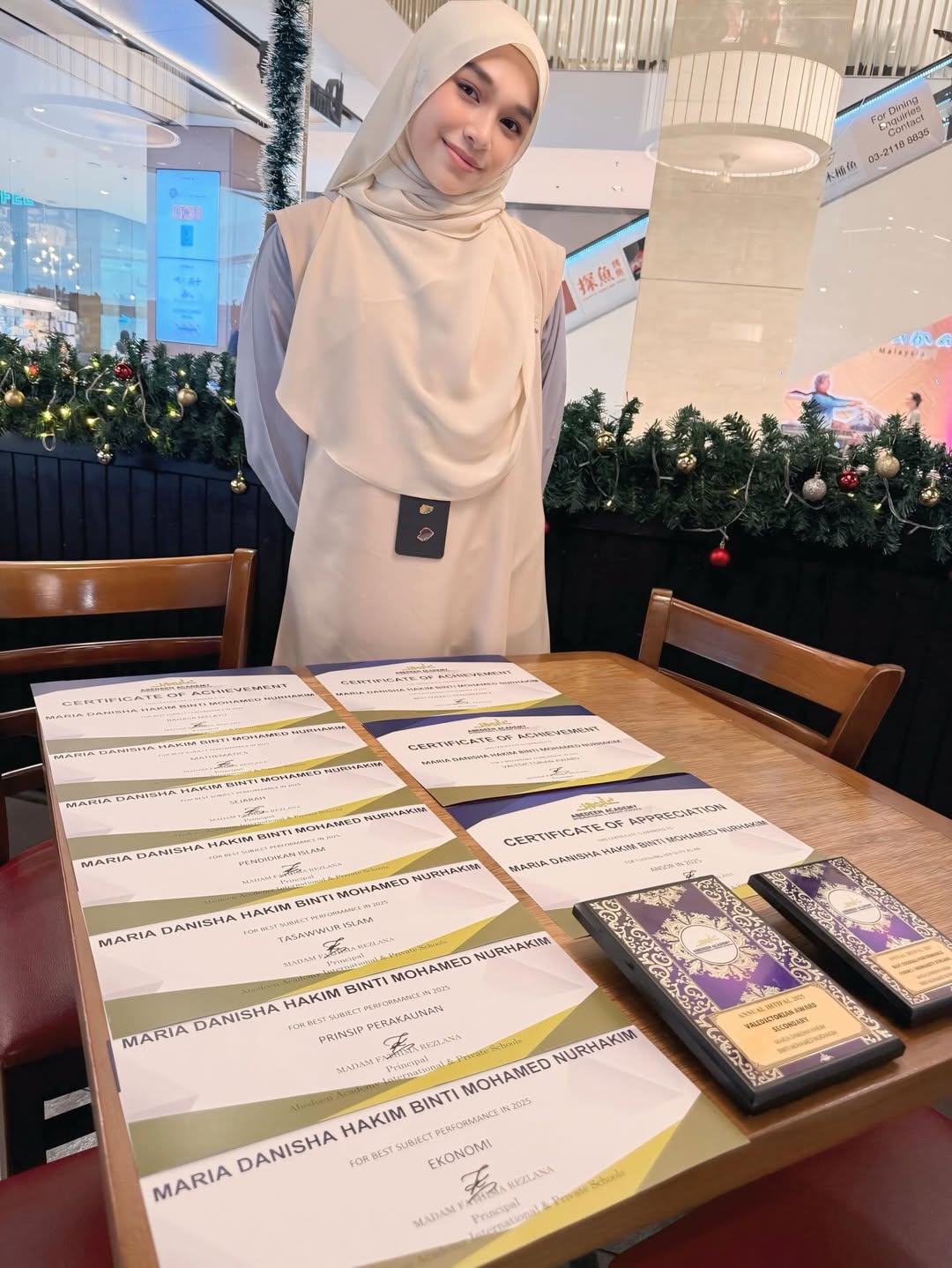 Selain itu, remaja berusia 18 tahun itu turut menerima Anugerah Prestasi Keseluruhan Terbaik, Anugerah Kepimpinan Ansor serta Anugerah Valedictorian, sekaligus membuktikan keupayaan beliau seimbang dari segi akademik dan kepimpinan.