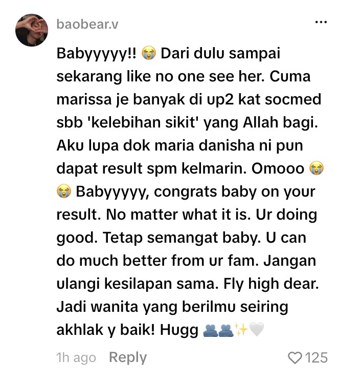 Menerusi hantaran di TikTok, Maria Danisha Hakim meluahkan isi hatinya yang selama ini dipendam, selain menggambarkan usaha yang dilakukan tanpa disedari orang sekeliling.